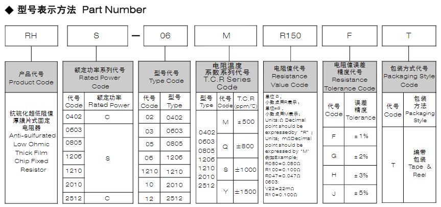 風華高科抗硫化超低阻值厚膜片式固定電阻器型號命名規則: