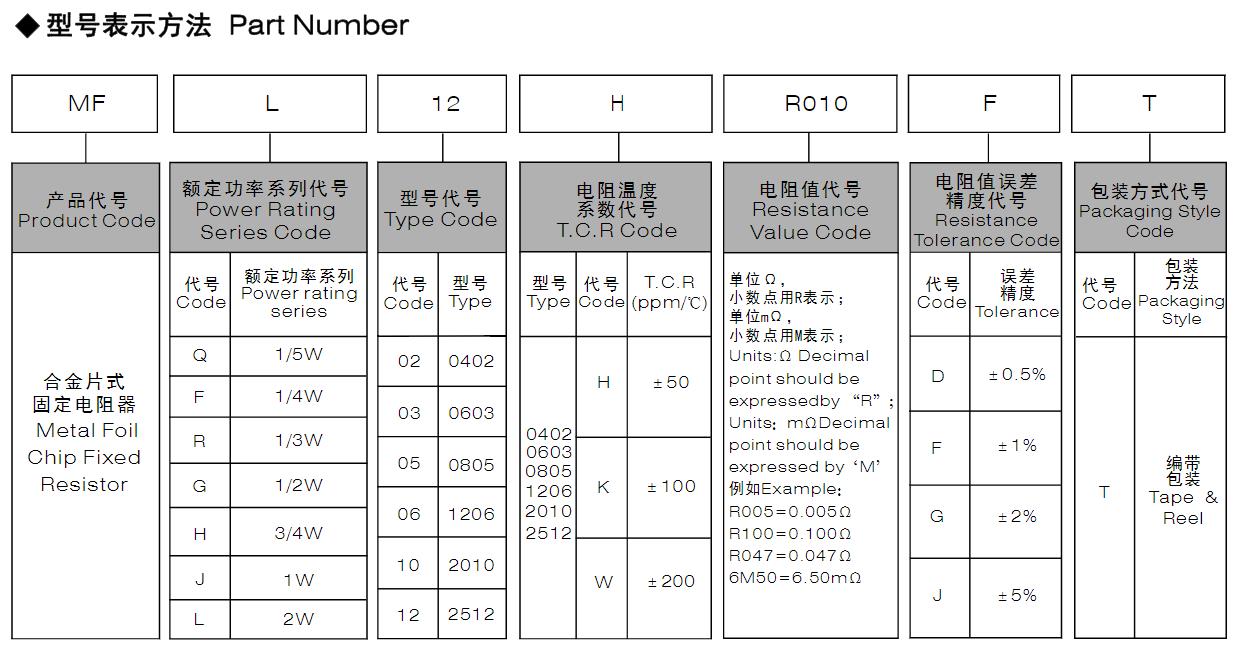 風(fēng)華高科合金片式固定電阻器型號(hào)命名規(guī)則: