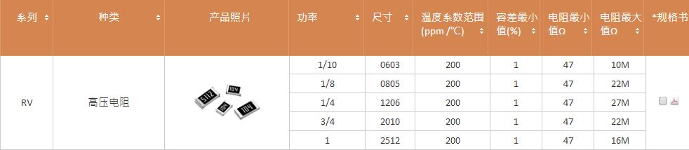 產品系列:國巨高壓電阻RV系列