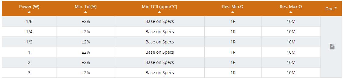 碳膜電阻適用于各類電子設計、商業及工業應用。可選擇防火涂料,標準或小型化。