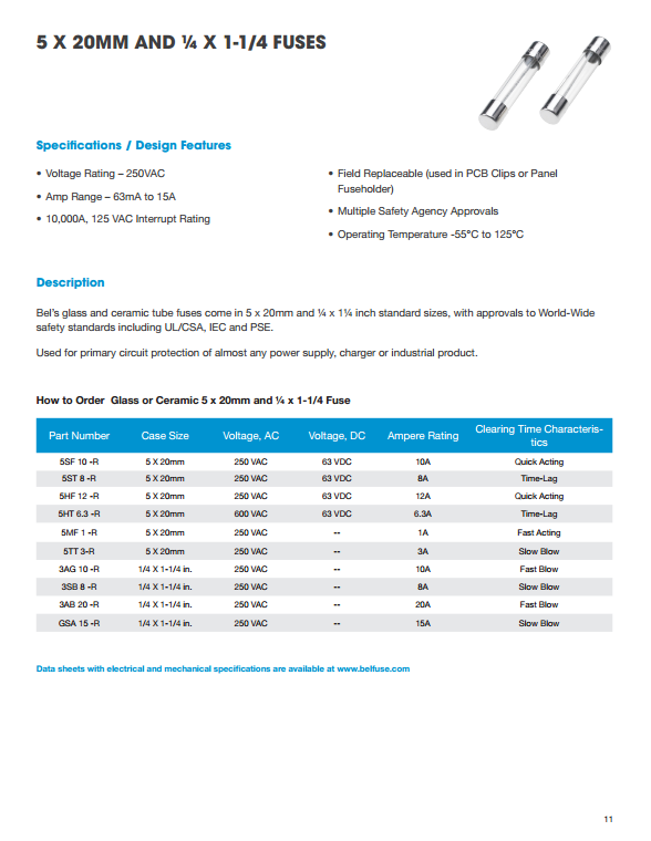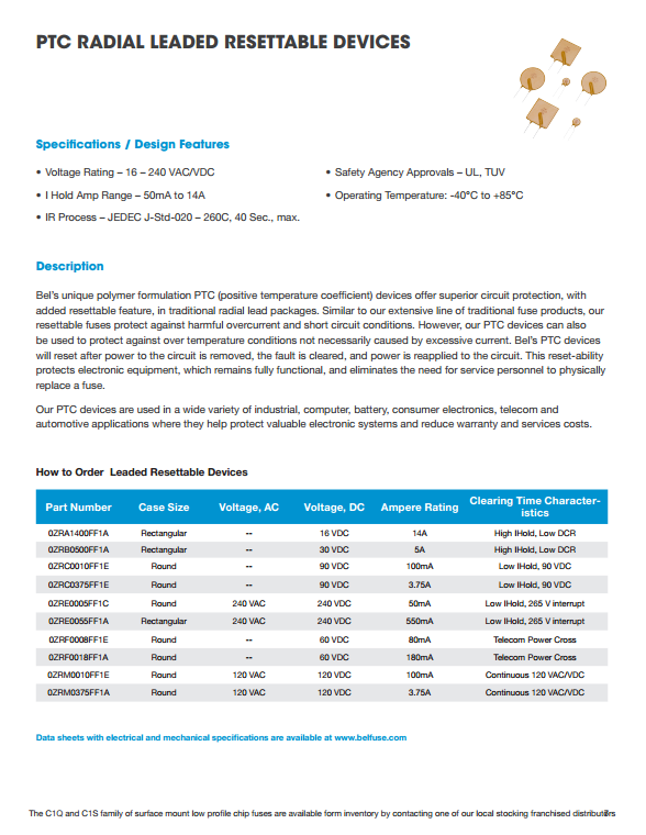 1、磚微型表面貼裝保險絲 2、薄型表面貼裝芯片保險絲 3、薄型SMD可復位器件 4、徑向PTC自恢復設備 5、250/277/350伏徑向保險絲 6、預制600V徑向保險絲 7、微型軸向引線保險絲 8、玻璃和陶瓷保險絲