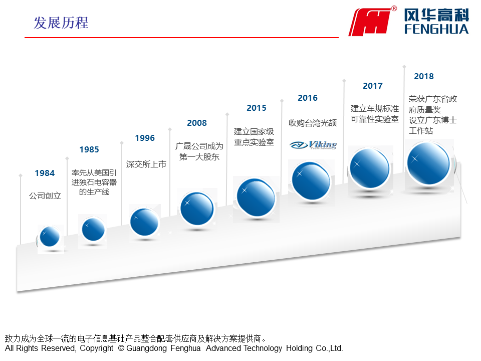 廣東風華高新科技股份有限公司(證券簡稱風華高科,證券代碼000636)成立于1984年,是一家專業(yè)從事高端新型元器件、電子材料、電子專用設備等電子信息基礎(chǔ)產(chǎn)品的高新技術(shù)企業(yè),1996年在深圳證券交易所掛牌上市。風華高科自進入電子元器件行業(yè)以來,實現(xiàn)了跨越式的發(fā)展,現(xiàn)已成為國內(nèi)最大的新型元器件及電子信息基礎(chǔ)產(chǎn)品科研、生產(chǎn)和出口基地,擁有自主知識產(chǎn)權(quán)及核心產(chǎn)品關(guān)鍵技術(shù)的國際知名新型電子元器件行業(yè)大公司。