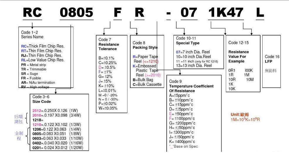 國(guó)巨貼片電阻命名規(guī)則對(duì)照表