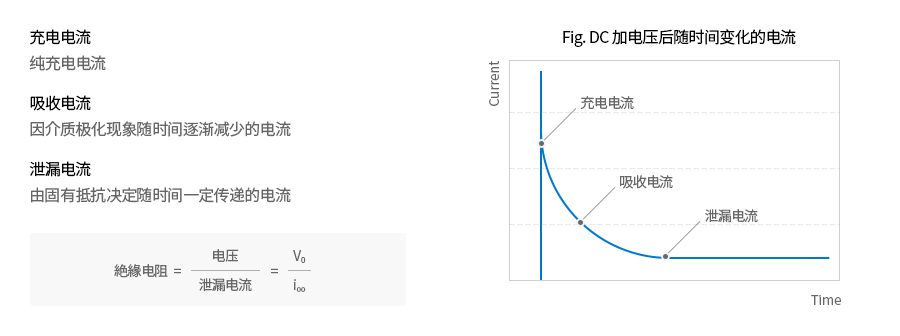 三星電機MLCC的絕緣電阻值極其標準和單位是什么? 絕緣電阻(Insulation resistance)是額定電壓除以泄漏電流的值,是泄漏電流加定額電壓時,電極兩端發生的電流。絕緣電阻通常以 MΩ 為單位,當直接加電壓時,如圖所示,產生充電電流,加電壓后等待60秒后,測量絕緣電阻。